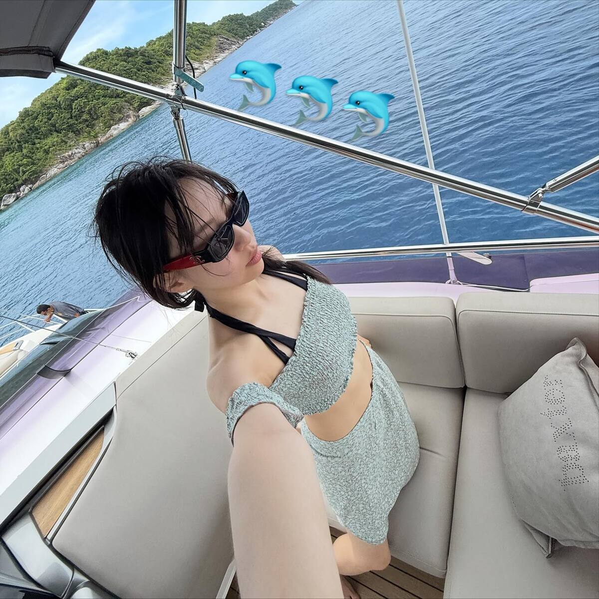 또 다른 사진에서는 선글라스를 착용하고 요트를 타며 휴양지의 여유를 만끽하는 모습이 담겨, 럭셔리한 분위기를 자아냈다.