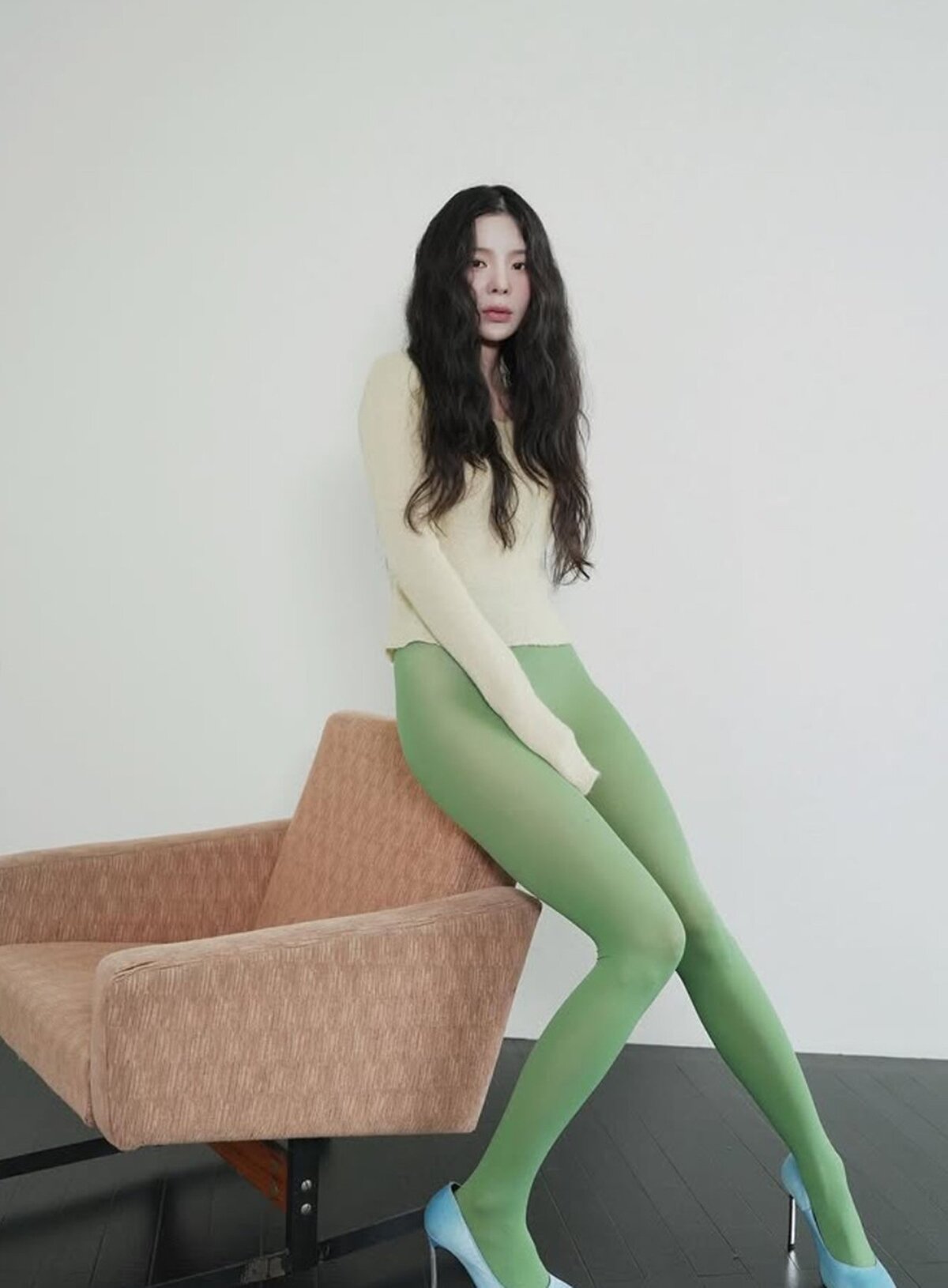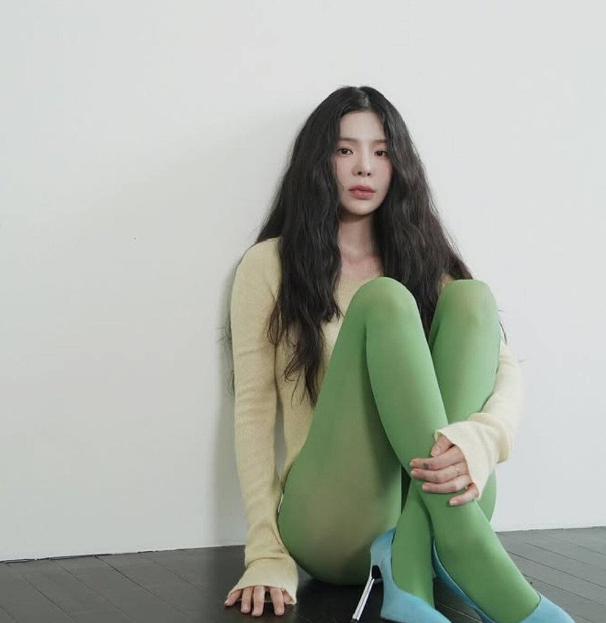 공개된 사진 속 장재인은 노란색 니트에 녹색 팬티스타킹, 하늘색 구두를 매치해 독특한 컬러 조합으로 시선을 사로잡았다. 바지 대신 팬티스타킹을 착용한 파격적인 스타일링이 특히 눈길을 끌었다.