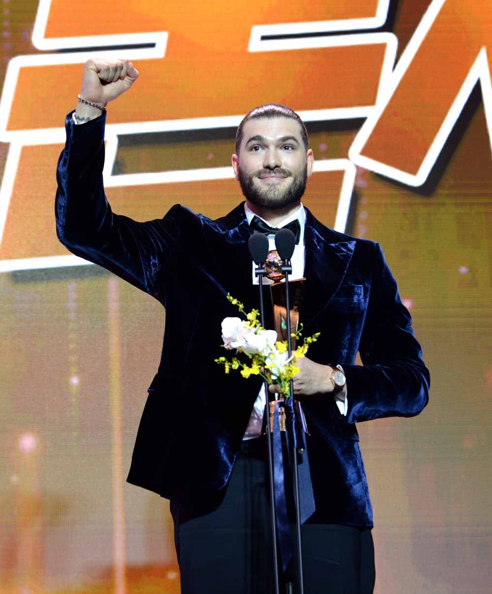 프로야구 한화 폰세가 24일 서울 송파구 잠실 롯데호텔 월드 크리스탈볼룸에서 열린 '2025 신한 SOL뱅크 KBO 시상식'에서 MVP를 수상한 뒤 소감을 발표하고 있다. 사진=김두홍 기자 kimdh@sportsworldi.com