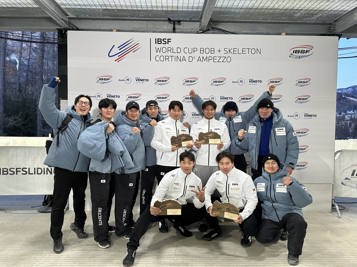 지난 23일 이탈리아 코르티나담페초에서 열린 2025-2026 IBSF 월드컵 1차 봅슬레이 4인승 경기에서 김진수(파일럿)–김형근·김선욱(푸시맨)–이건우(브레이크맨)으로 구성된 대한민국 대표팀이 종합 3위를 기록했다. 한국 봅슬레이 4인승이 월드컵에서 거둔 역대 최고 성적이다.