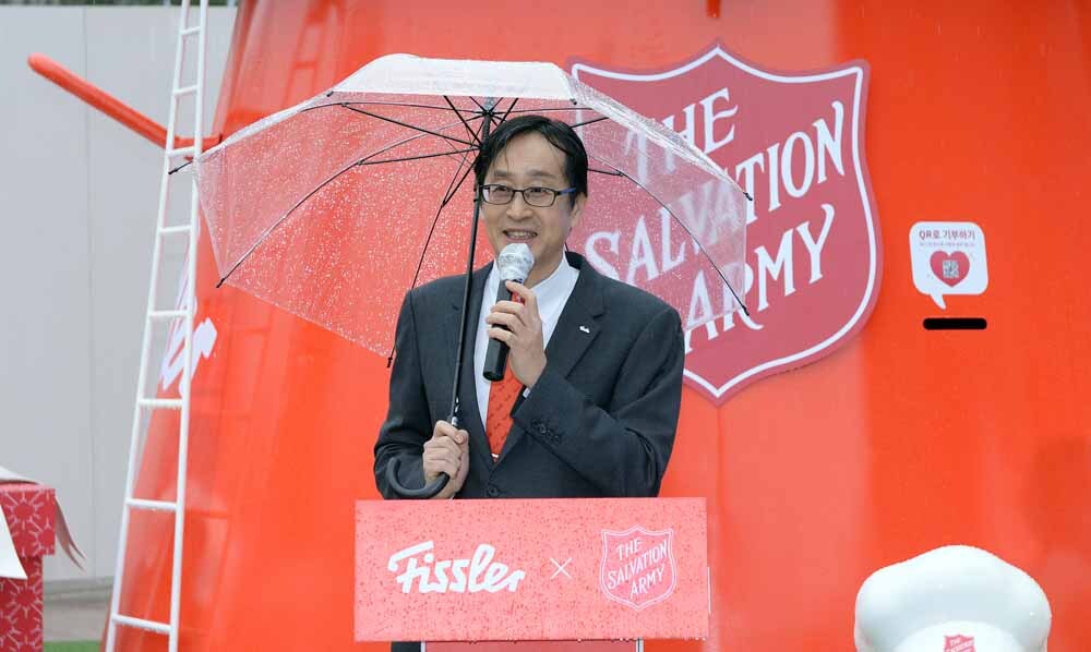 이경우 휘슬러코리아 대표가 27일 서울 중구 서울광장에서 열린 '2025 휘슬러X구세군 사랑의 레시피 팟 자선냄비 전달식'에서 인사말을 하고 있다. 사진=김두홍 기자 kimdh@sportsworldi.com